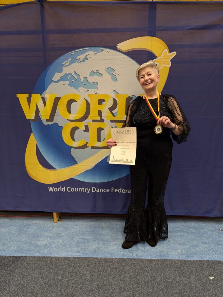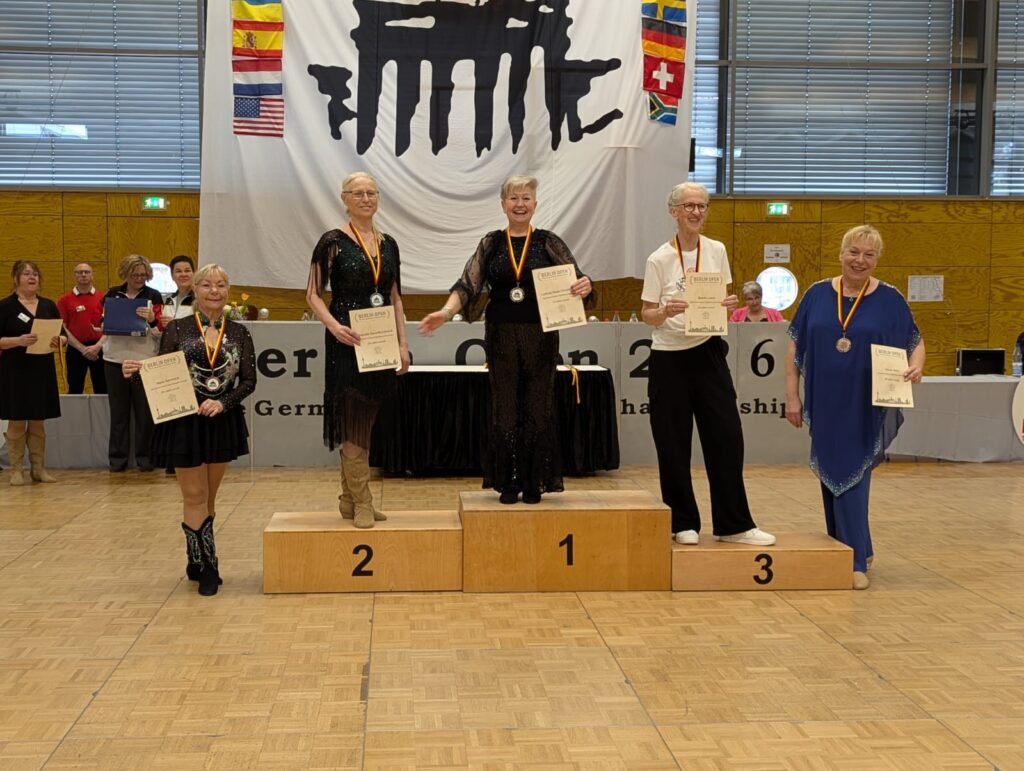 Im Vorjahr noch 4. im Feld von 10 Tänzerinnen setzte sich Ludmila jetzt gegen 11 Konkurrentinnen in der Klasse „Line Dance-Classic-Gold Newcomer-Female“ durch. Bereits in der Vorrunde am Freitag qualifizierte sie sich auf diesem internationalen Line Dance Event in allen 6 Tänzen für das Finale am Sonntag. Mit 5 gewonnenen Tänzen und einem 2. Platz sicherte sie sich die Goldmedaille.