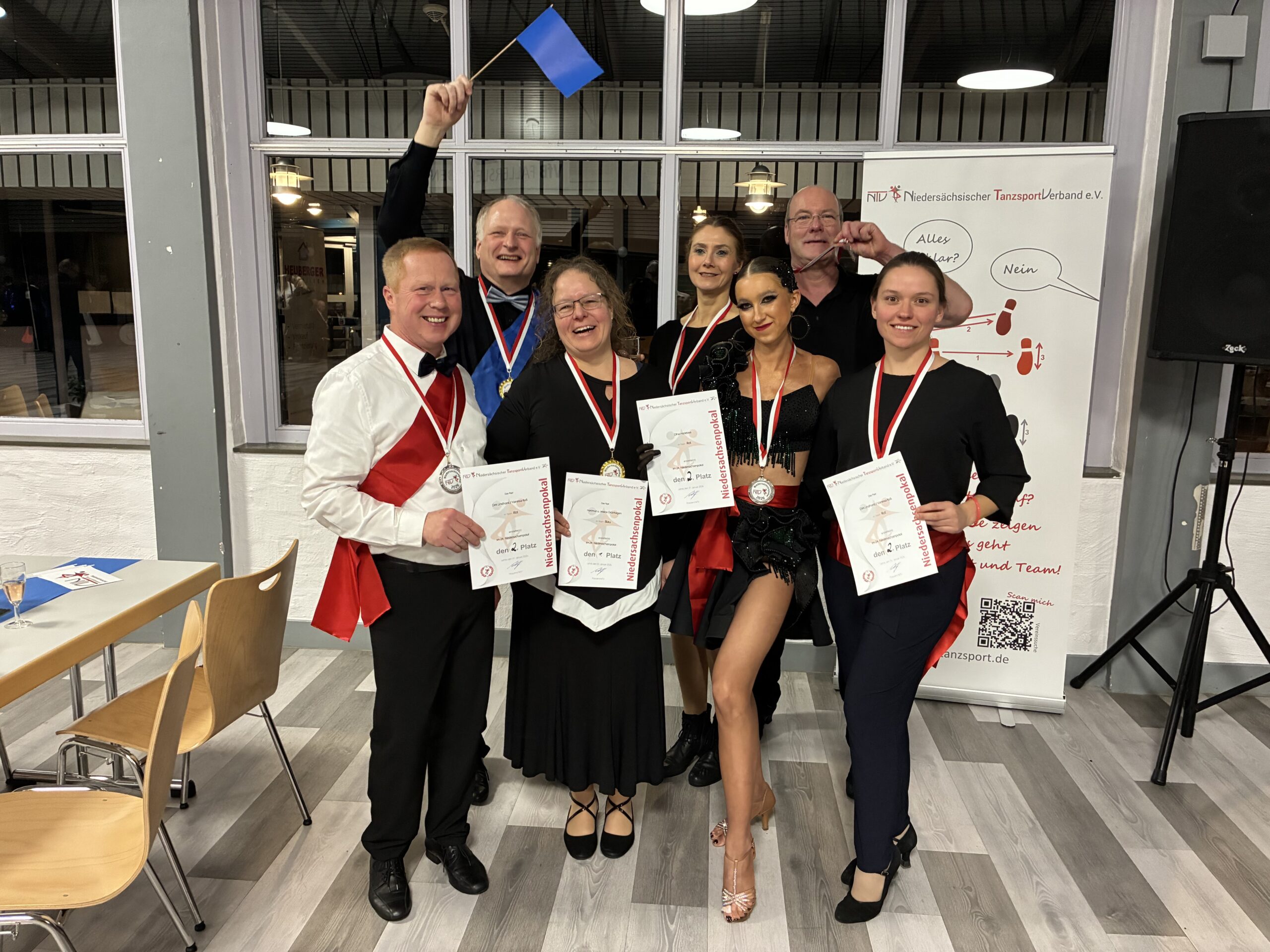 Sieben MTV Tänzerinnen und Tänzer mit Betreuern trafen sich beim diesjährigen „Familienfest“ des niedersächsischen Tanzsportverbandes mit vielen anderen Tanzsportlern in Lehre. Die Auslosung verteilte unsere